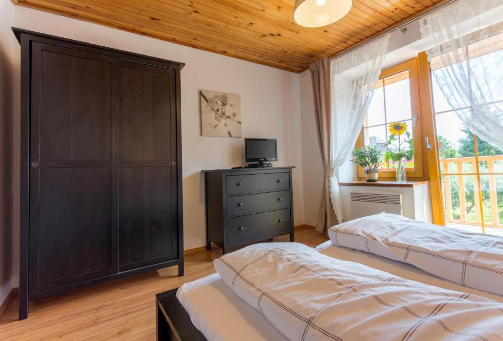 - Typy postelí : 2x Velká manželská postel, 1x Rozkládací pohovka